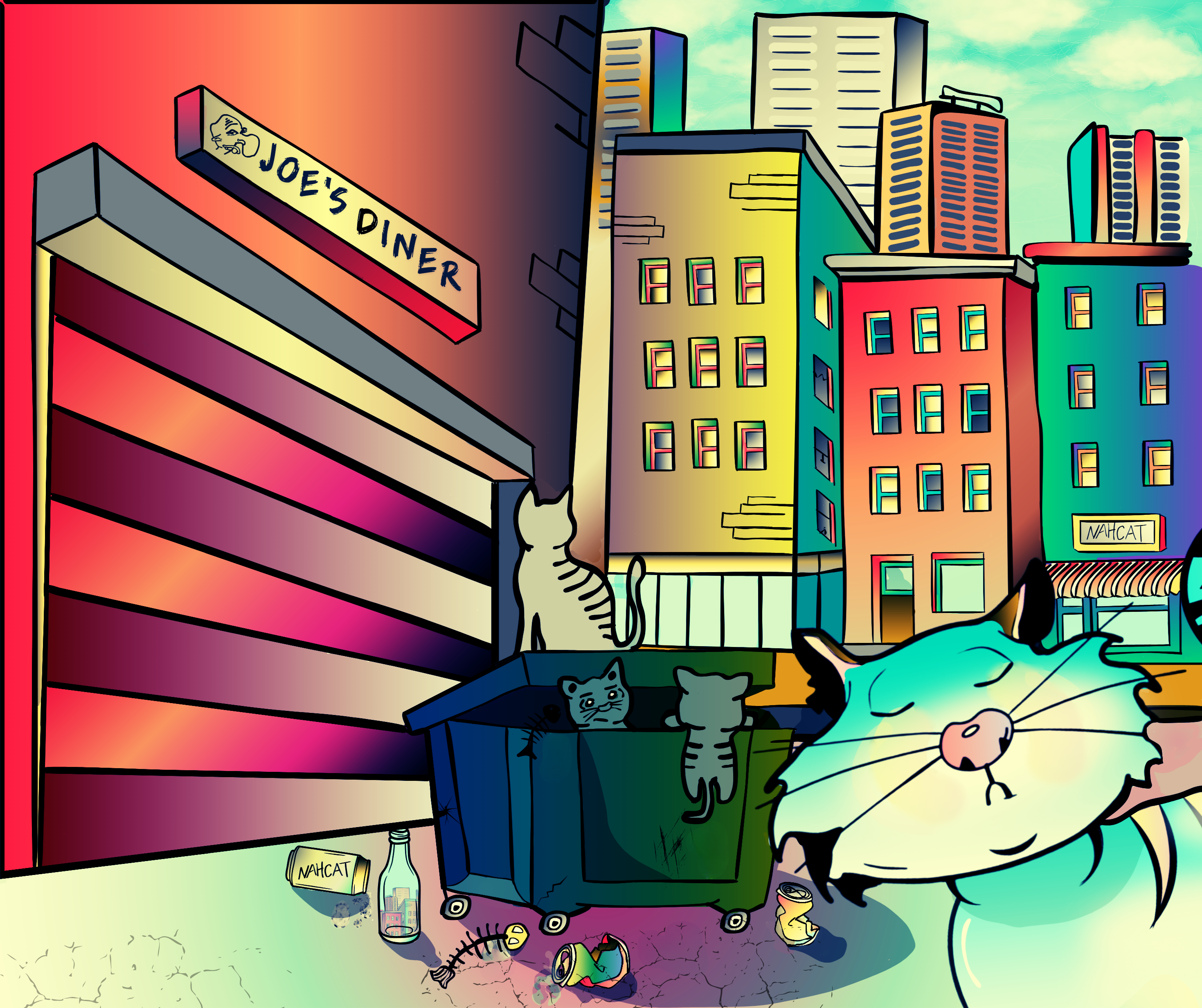 Meet Ed the Nah-cat, amidst all the fussing and fighting, one cat stands out. One cat has the courage to speak his mind and follow his heart. One cat is not afraid to make up his own mind, one cat dares to say ,,Naah”.
